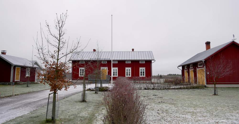 Villa FrankUppe på en ås, bland befintlig bebyggelse. Byggnaderna skulle placeras så att en skyddad gårdsmiljö uppstår. Helt och hållet nya byggnader alla tre; bostaden, torpet och uthuset.